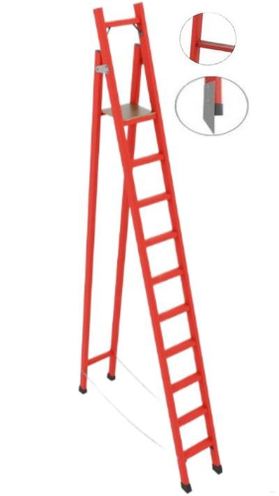 ССС-3,3АТМ диэлектрическая стремянка с симметричной опорой, Телеком, абразивное покрытие ступеней, металлические оконцеватели (Мягкий грунт), h=3300мм, h рабочей площадки=2400мм, ступ.10 - обеспечивает безопасность при проведении электромонтажных работ