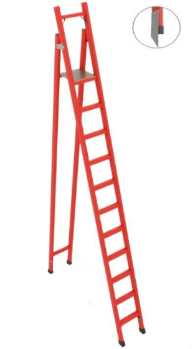 ССС-3,6ТМ диэлектрическая стремянка с симметричной опорой, Телеком, металлические оконцеватели (Мягкий грунт), h=3600мм, h рабочей площадки=2700мм, ступ.11 - обеспечивает безопасность при проведении электромонтажных работ