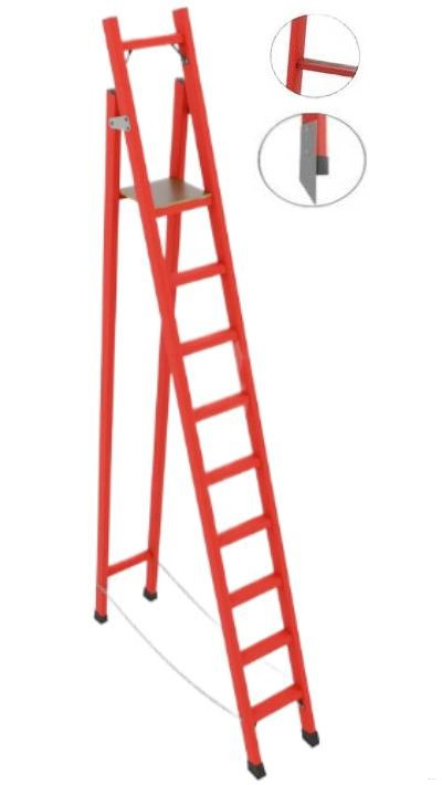 ССС-3,9АМ диэлектрическая стремянка с симметричной опорой, абразивное покрытие ступеней, металлические оконцеватели (Мягкий грунт), h=3900мм, h рабочей площадки=3000мм, ступ.9 - обеспечивает безопасность при проведении электромонтажных работ