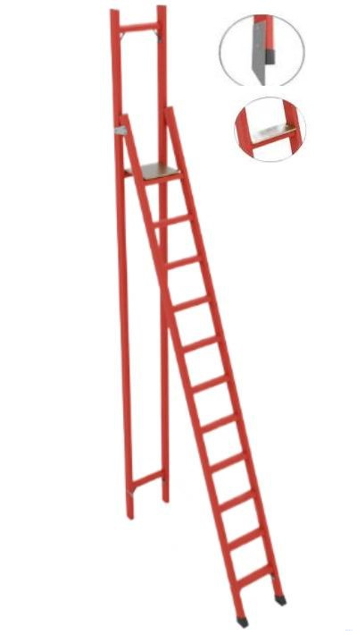 ССВ-3,6ТШМ стремянка стеклопластиковая с вертикальной опорой, Телеком, широкие ступени, металлические оконцеватели (Мягкий грунт), h=3870мм, h рабочей площадки=2600мм, ступ.11 - обеспечивает безопасность при проведении электромонтажных работ