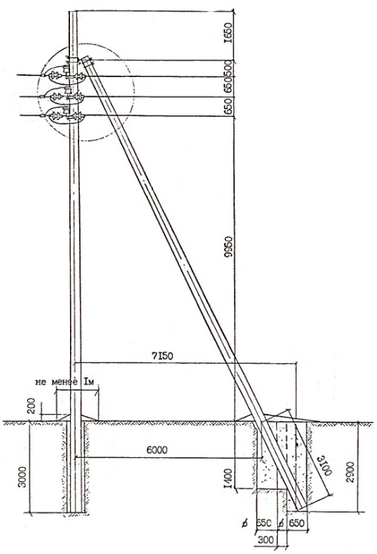 Закрепление опоры ОДтБ10-4 предусматривается в песчаных и глинистых грунтах в пробуренных котлованах диаметром 350 мм. При этом учитывается возможность использования местного грунта для засыпки пазух котлованов.