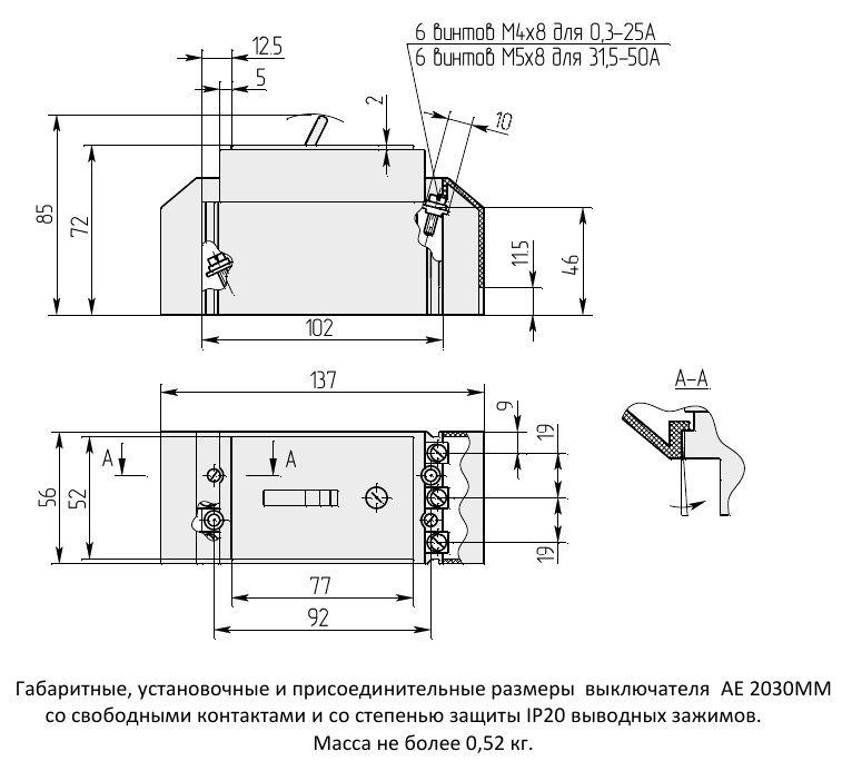 Данный выключатель не имеет регулировки номинального тока тепловых расцепителей и не имеет температурной компенсации.